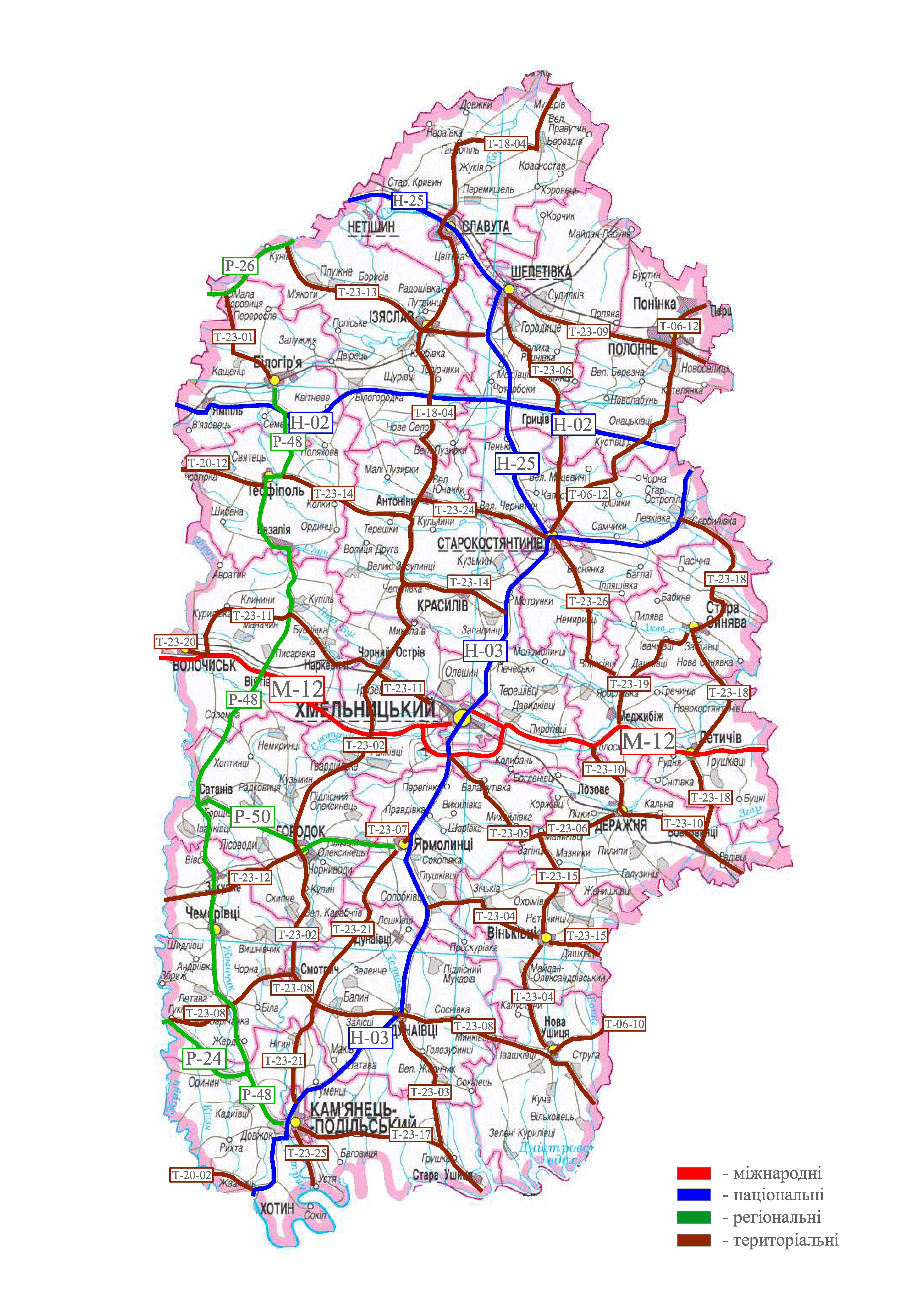 В подчинение Хмельницкой областной государственной администрации отошло 811 автодорог местного значения общей протяженностью 5087,8 км (областные и районные).