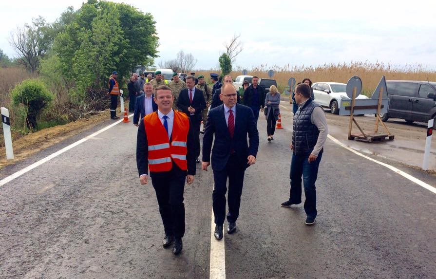 Председатель Одесской ОГА Максим Степанов вместе с начальником Службы автомобильных дорог в Одесской области Олегом Вариводой открыли временную объездную дороги на трассе М-15 Одесса-Рени, возле села Паланка.