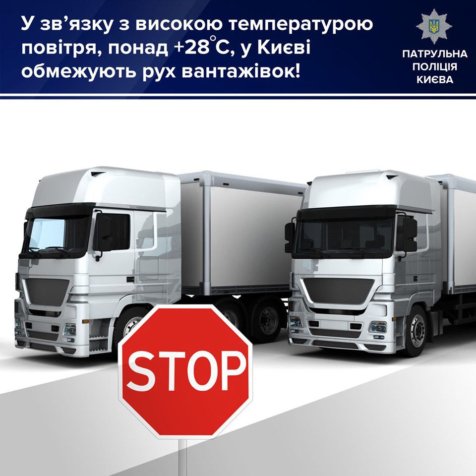 В связи с повышением температуры воздуха в Киеве вводится временное ограничение дорожного движения для большегрузного транспорта с 12:00 до 18:00.