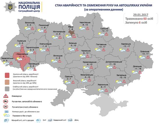 Критической по уровню аварийности на дорогах ситуация была в Ивано-Франковской области. За минувшие сутки на дорогах Украины погибло шесть граждан, травмированы - 60.