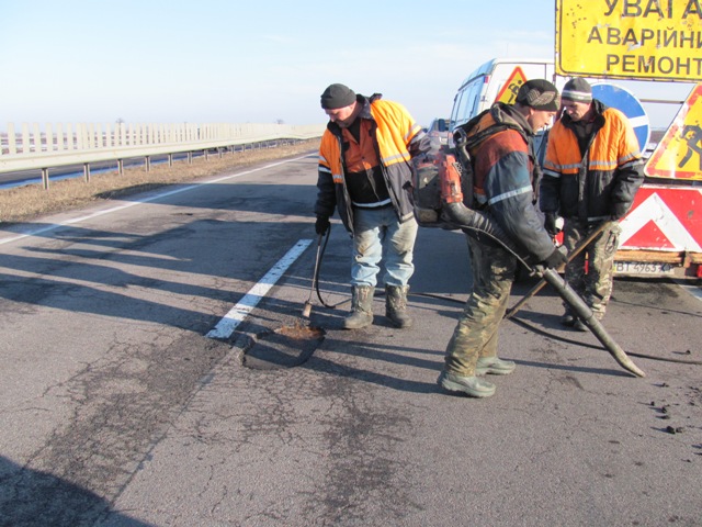 Работы выполняются филиалами ГП «Херсонский облавтодор» на государственных дорогах, которые после уборки снега покрылись выбоинами. Ремонтные работы выполняются с применением холодной асфальтобетонной смеси с соблюдением технологии и постоянно контролируются инженерами технического контроля и лаборатории Службы автомобильных дорог в Херсонской области.
