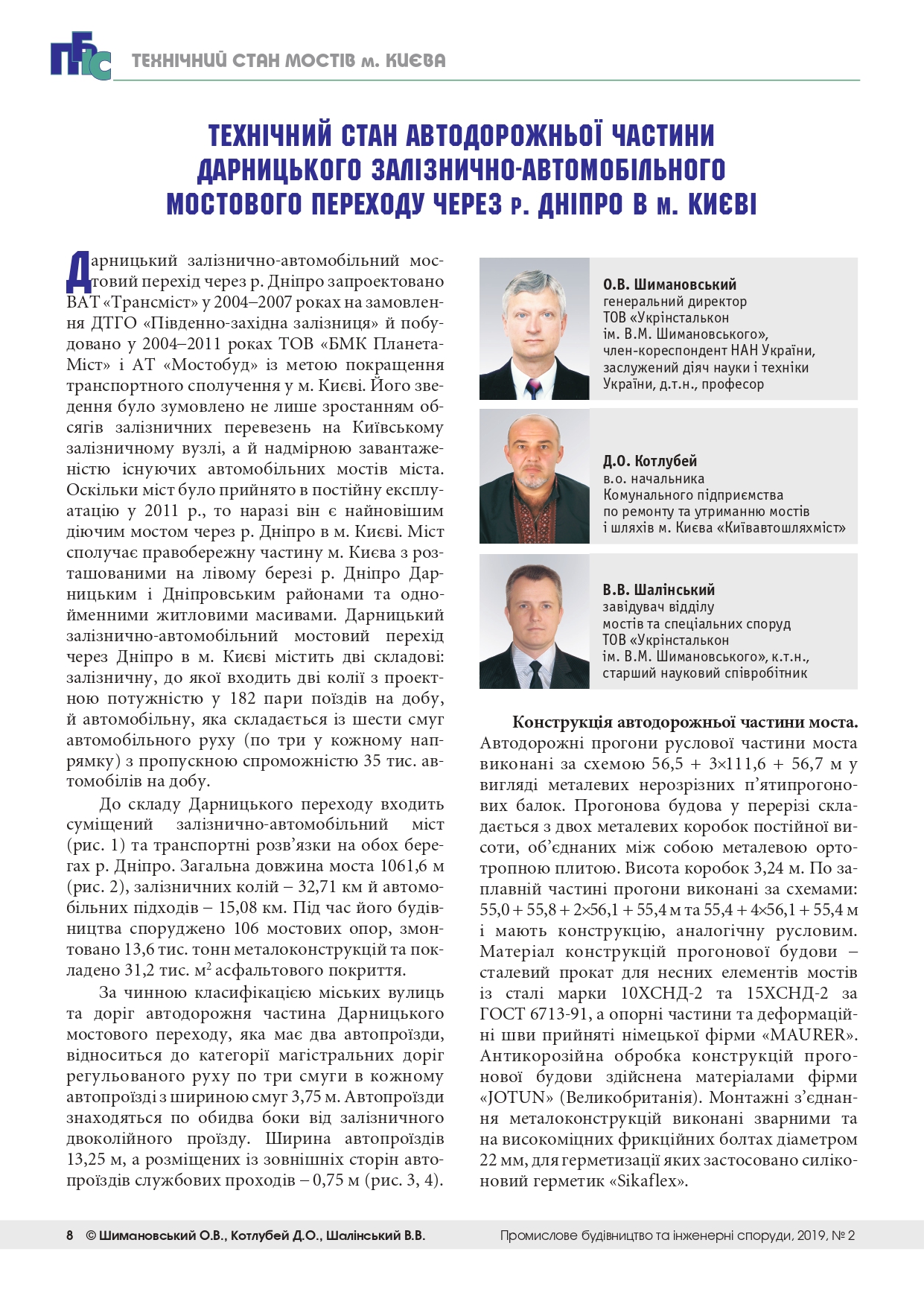 ТЕХНІЧНИЙ СТАН АВТОДОРОЖНЬОЇ ЧАСТИНИ ДАРНИЦЬКОГО ЗАЛІЗНИЧНО-АВТОМОБІЛЬНОГО МОСТОВОГО ПЕРЕХОДУ ЧЕРЕЗ р. ДНІПРО В м. КИЄВІ