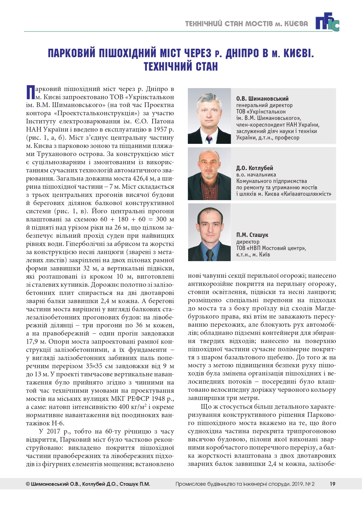 ТЕХНІЧНИЙ СТАН МОСТІВ м. КИЄВА. " ПАРКОВИЙ ПІШОХІД...