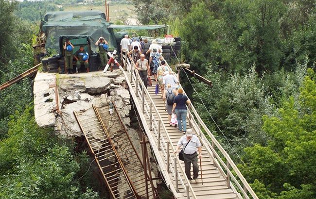 Сегодня, 18 сентября, работы у излома моста вблизи КПВВ "Станица Луганская" выполняли работники ООО "Уктрансмост", инженерная группа ГСЧС и три пиротехнические группы.